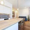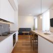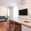 L’appartamento offre con dettagliato minimalismo un open space, costituito dalla zona giorno, completa di libreria rifornita, divano letto, TV a schermo piatto e una sedia a dondolo, e dalla zona cucina, completa di tavolo da pranzo a 4 ospiti e un elegante cucina dai toni chiari. La cucina è attrezzata di stoviglie, utensili da cucina, piano induzione, forno, frigorifero e lavastoviglie.