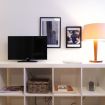 Il bilocale propone una zona living, composta da un divano letto (a una piazza e mezza), TV a schermo piatto, tavolo da pranzo a 4 posti e una piccola cucina, completa di frigorifero, freezer, piano induzione, lavatrice, stoviglie e forno a microonde. La zona notte propone, con la sua iconica parete blu, un confortevole letto matrimoniale, con due lampade laterali. La zona bagno è completa di ogni comfort, come specchio, lavandino, toilette, bidet e un’elegante doccia.