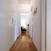 L’appartamento, caratterizzato dall’elegante parquet a spina di pesce e dagli ampi armadi lungo il corridoio, offre riscaldamento centralizzato e aria condizionata in salotto.