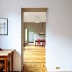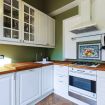 The flat opens towards the living area, where we find a large living room, with a comfortable sofa, a soft armchair, a wooden dining table and a flat screen TV. The living room has been designed for moments of entertainment and relaxation, disconnecting from the stresses of the day. Next is the olive-green kitchenette, equipped with everything you need, including fridge, freezer, four-burner cooker, dishwasher, microwave and combi oven. A little further on is the main bathroom, fully equipped with a bathtub. At the end of the corridor, we find the main double bedroom with a four-door wardrobe.