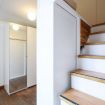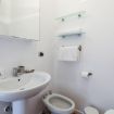 In addition to the master bedroom, the house has another room conceived on two levels for a total of 4 beds. The first room on the ground floor has a queen-size bed, with two white designer bedside tables. On the second level, two single beds. Between these two spaces, the walk-in wardrobe is useful for storing clothes and other items. Finally, the second bathroom is also fully equipped, but this time with a shower.