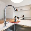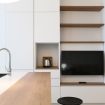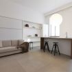 Lo spazio si presenta subito con il pragmatismo: abbiamo un open-space, costituito da un’ampia cucina ad isola, con piano cottura ad induzione, lavello e due sgabelli e frigorifero moderno. La luminosità conferita dalle ampie finestre contribuisce a dare luminosità al soggiorno, nel quale si trovano un comodo divano letto a quattro posti e una TV a schermo piatto. Non mancano i numerosi armadi e ripiani in cui riporre i propri oggetti personali.
