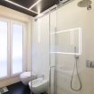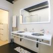 The Bathroom Zone offers all kinds of amenities, such as a toilet, bidet and a large walk-in shower. The uniqueness of this area reminds the details of the whole house: the special feature of the two suspended sinks and the pretty white pebbles, along with the large mirror with LED lights, offer a modern and bright perspective.