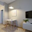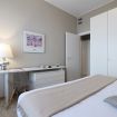 Bilocale arredato e servito; soggiorno con vista giardino, tavolo da pranzo, divano a due posti e televisione schermo piatto e connessione WiFi gratuita in fibra ottica; cucina attrezzata open-space con frigorifero, freezer, lavapanni e forno a microonde; camera matrimoniale con armadio spazioso, scrittoio e balcone; bagno ensuite con finestra, vasca e doccia, bidet e toilette; arredato con cura, riscaldamento e aria condizionata centralizzato, doppie finestre e pavimenti in marmo.