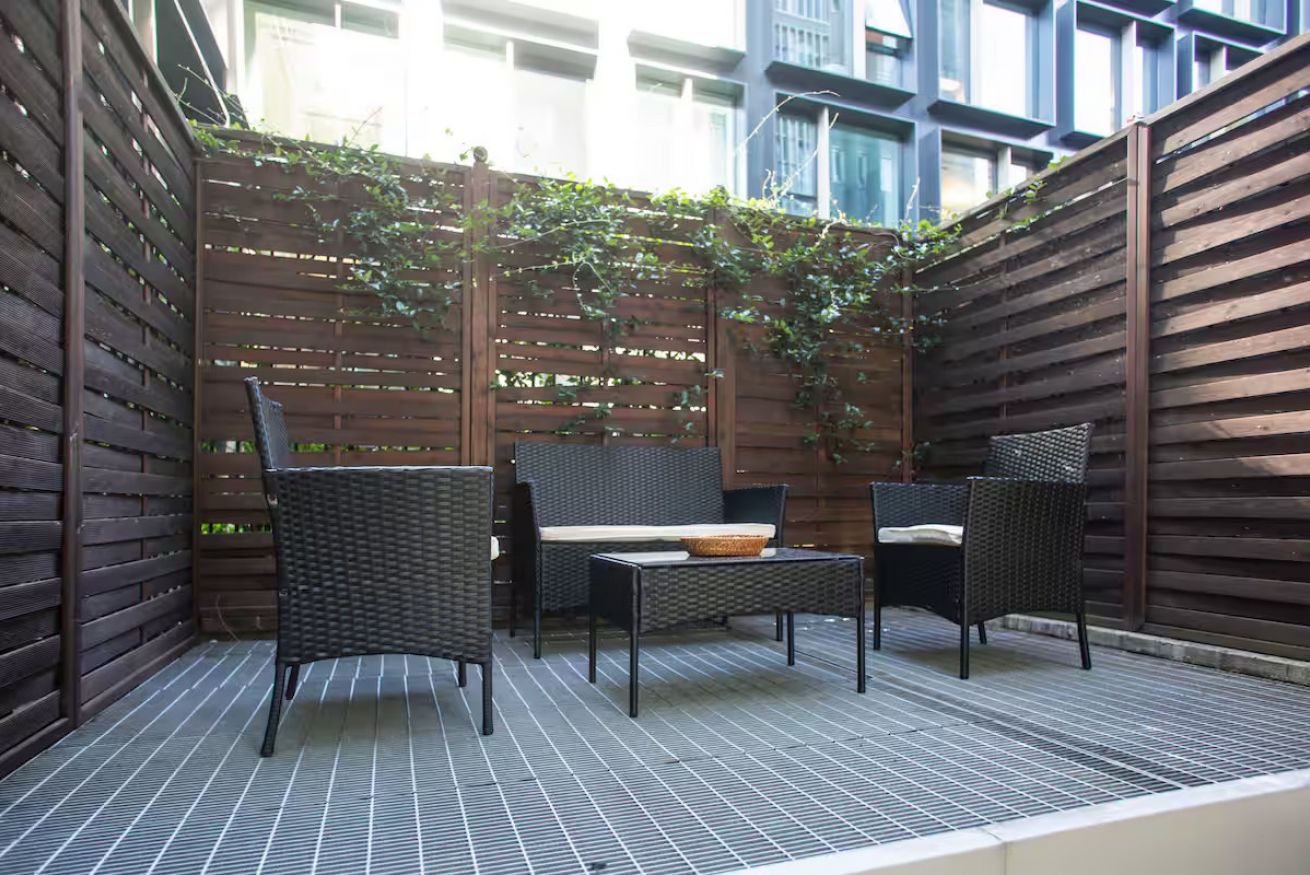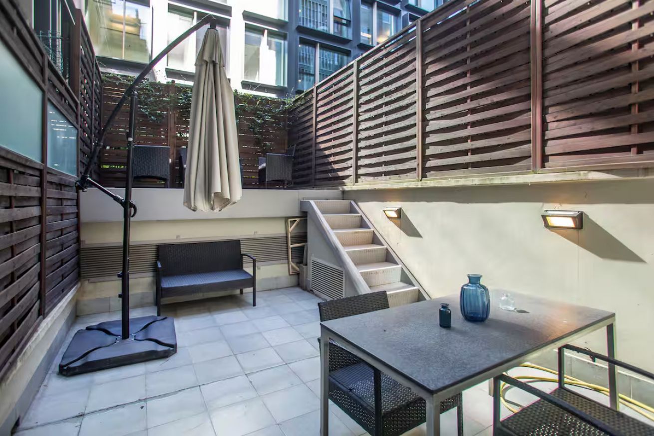Completing the flat is also a lovely terrace overlooking the inner courtyard.