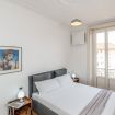 Il bilocale di 90 m2 presenta uno spazio elegante, costituito da una splendida cucina open-space bianca con un’isola formata dal piano cottura a gas e la zona colazione in marmo nero. La cucina, completa di forno a microonde, forno tradizionale, lavastoviglie e frigorifero, si affaccia direttamente sulla sala da pranzo, dalla quale è possibile raggiungere la Zona Living, dotata di smart TV e divano letto e la terrazza.