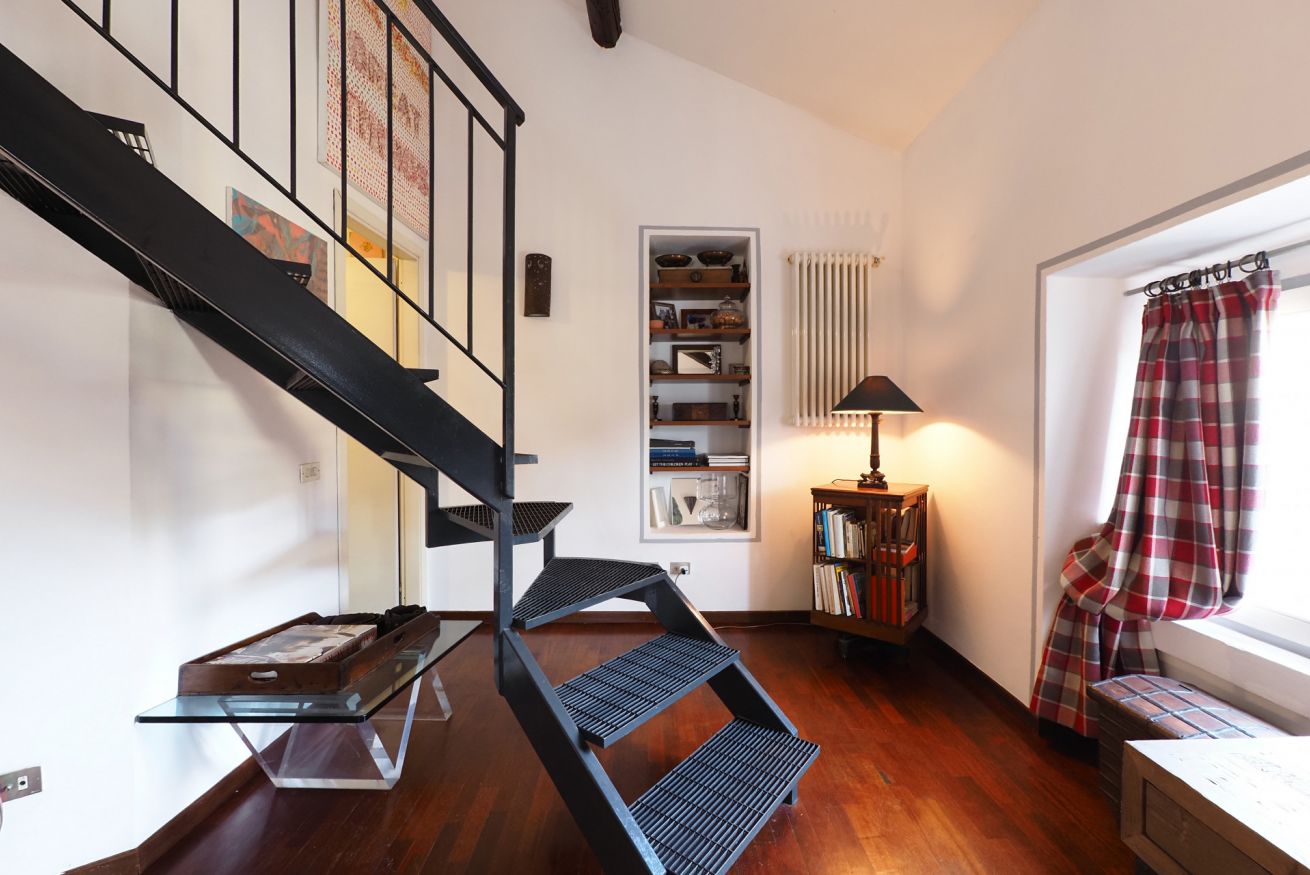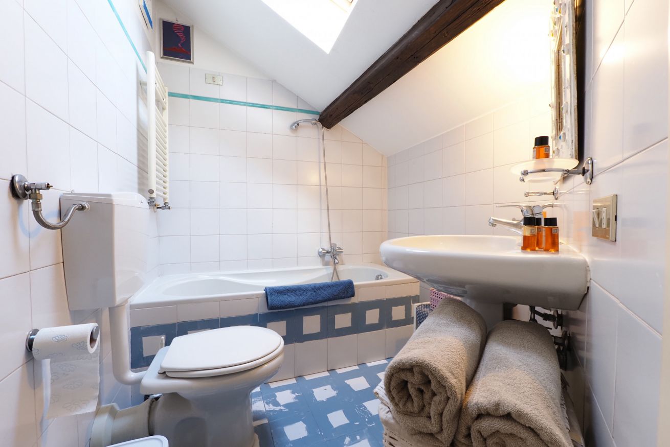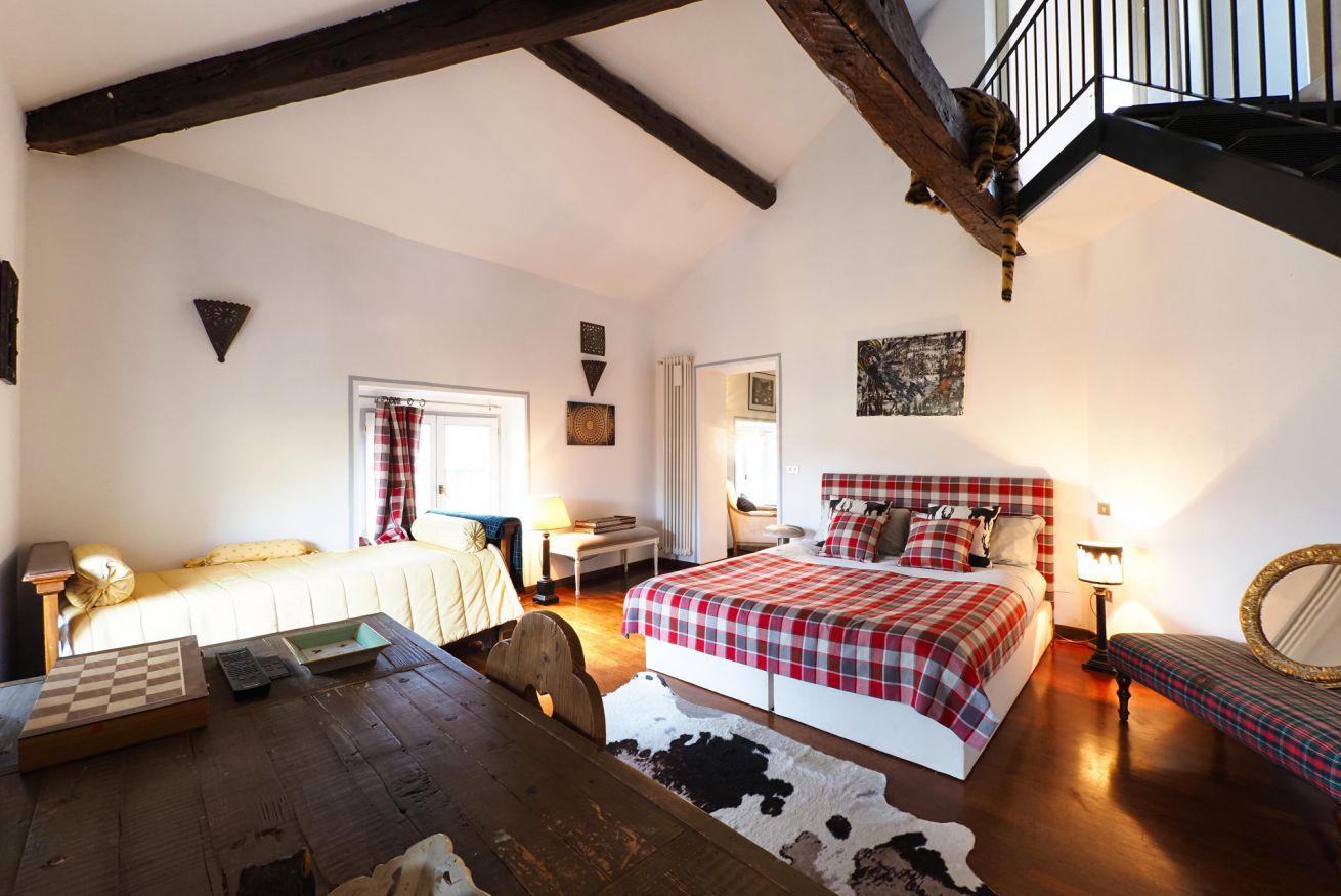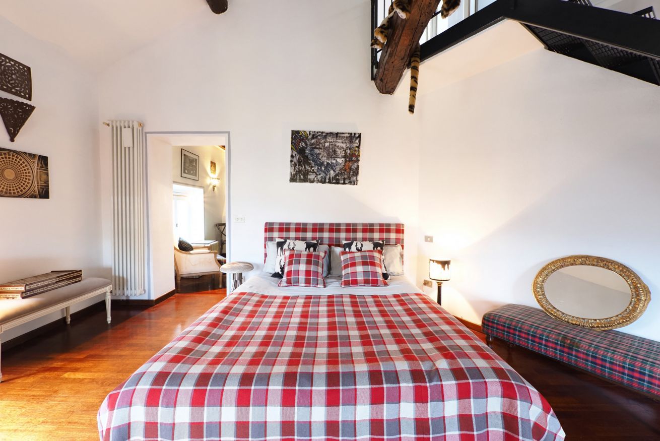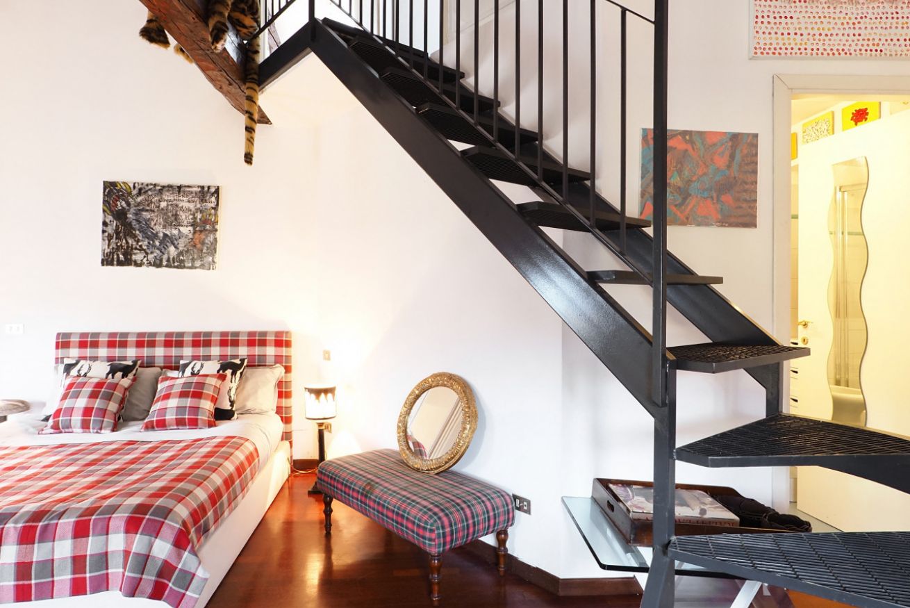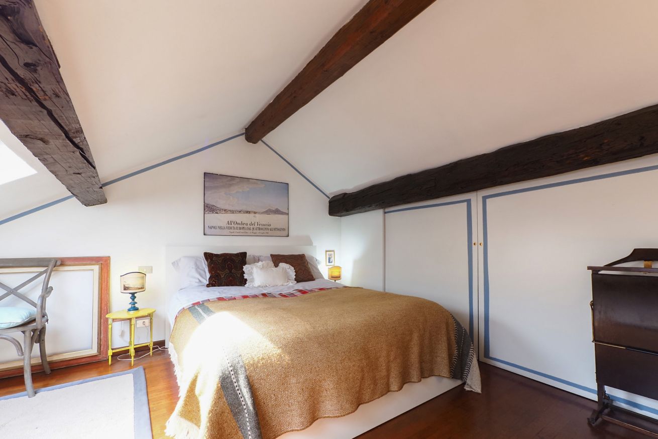 Al secondo livello, si trova una seconda camera con letto matrimoniale, soppalcata e caratterizzata da un tetto spiovente. Questa camera è inondata di luce naturale grazie alle finestre e dispone di un bagno privato con vasca, ideale per momenti di relax dopo una giornata in città.