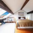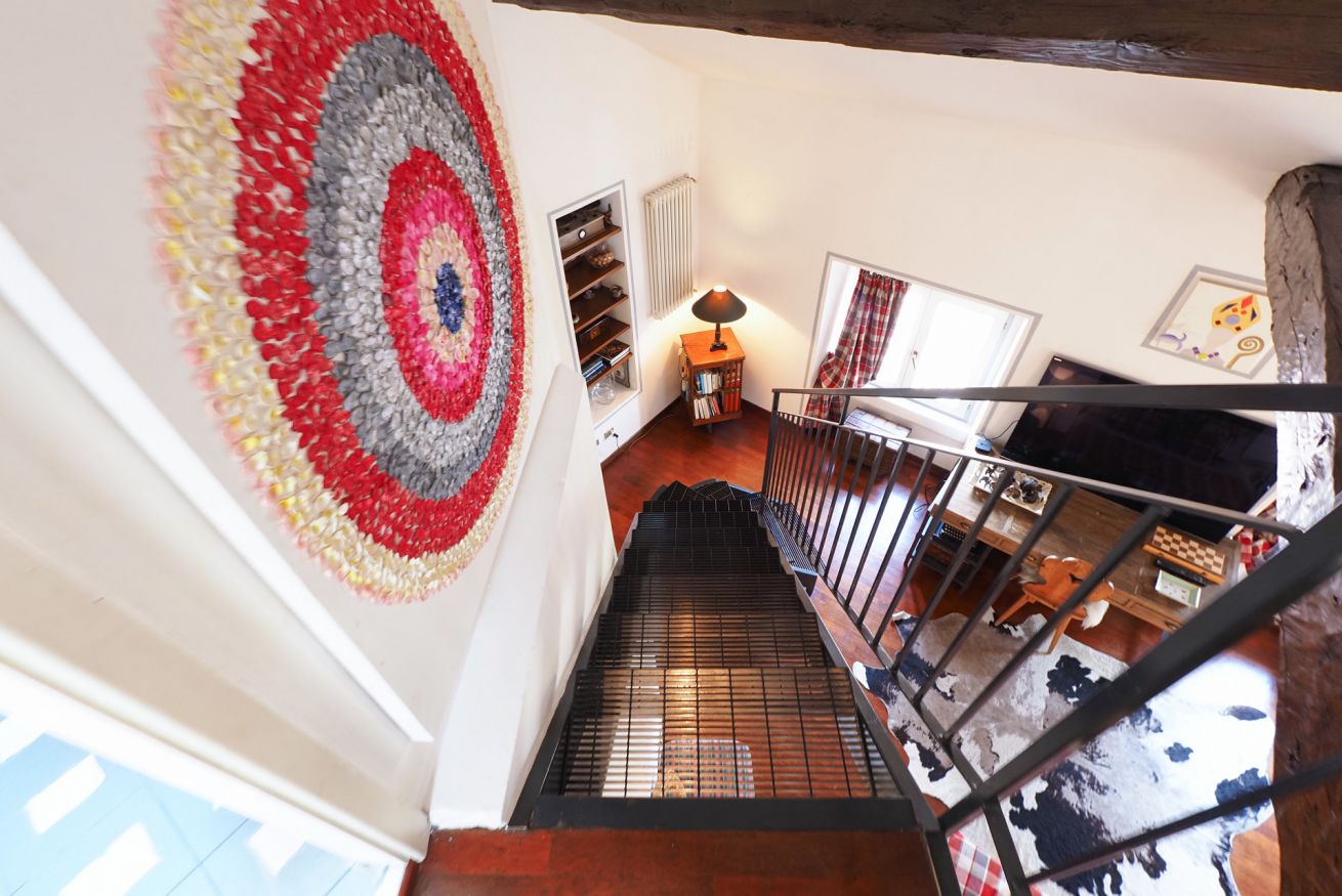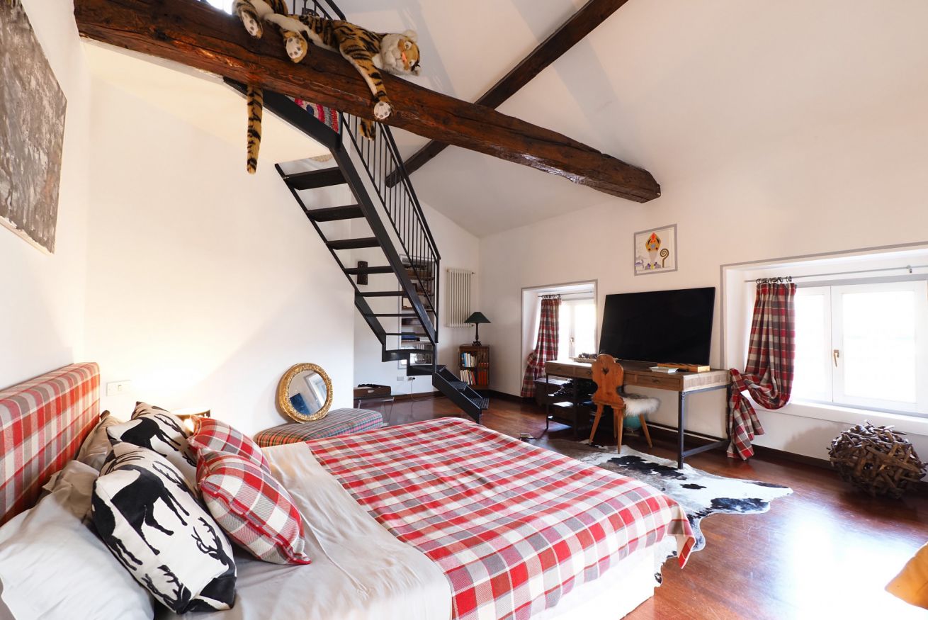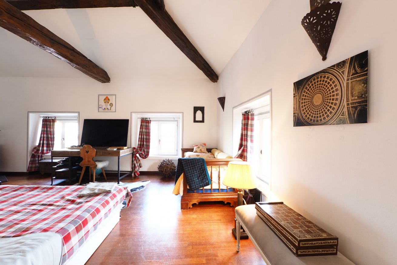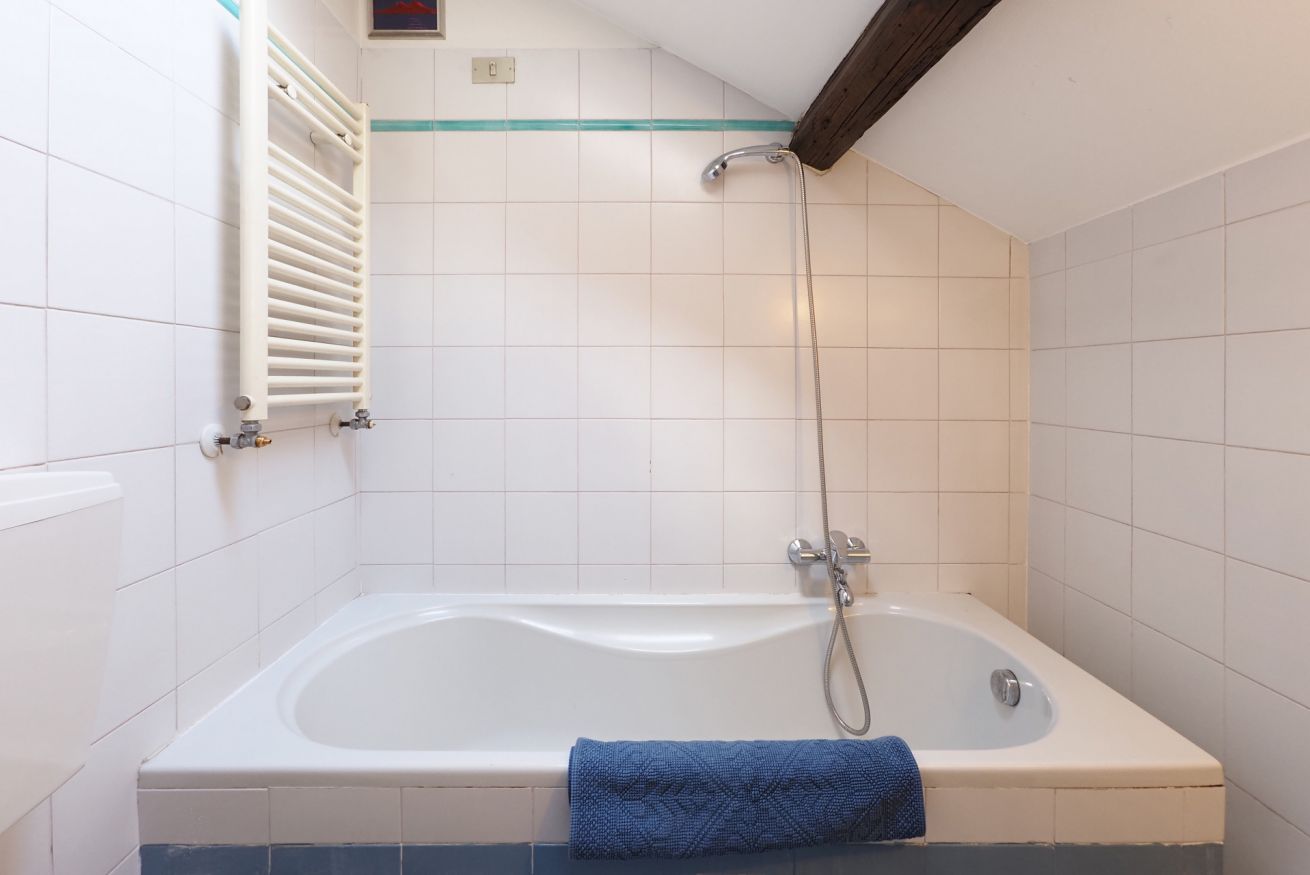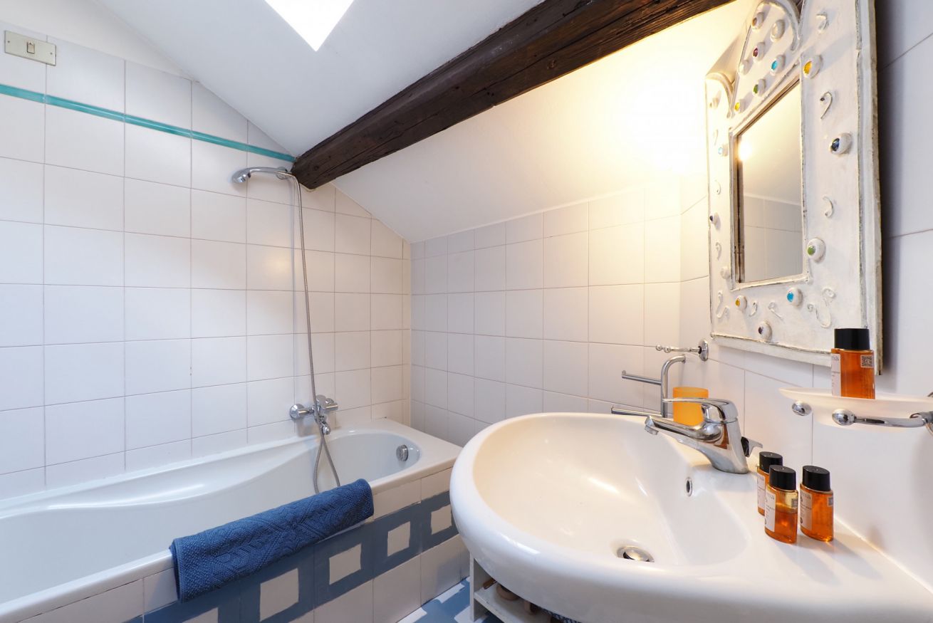 Al secondo livello, si trova una seconda camera con letto matrimoniale, soppalcata e caratterizzata da un tetto spiovente. Questa camera è inondata di luce naturale grazie alle finestre e dispone di un bagno privato con vasca, ideale per momenti di relax dopo una giornata in città.
