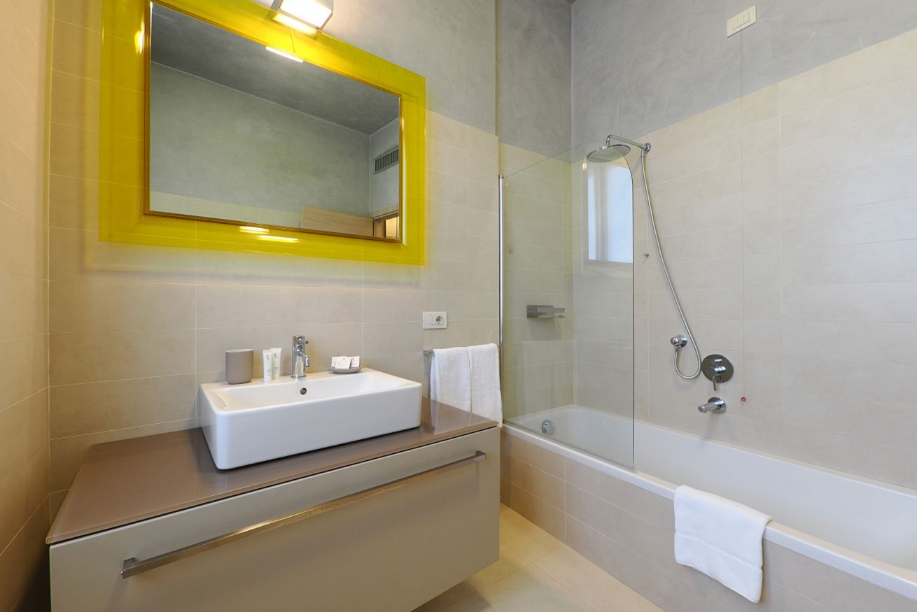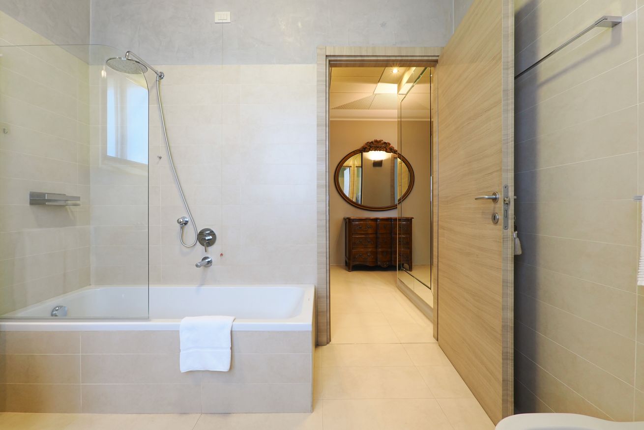 Infine, l'appartamento include una lavanderia e un secondo bagno padronale, completo di finestra e dotato di vasca.