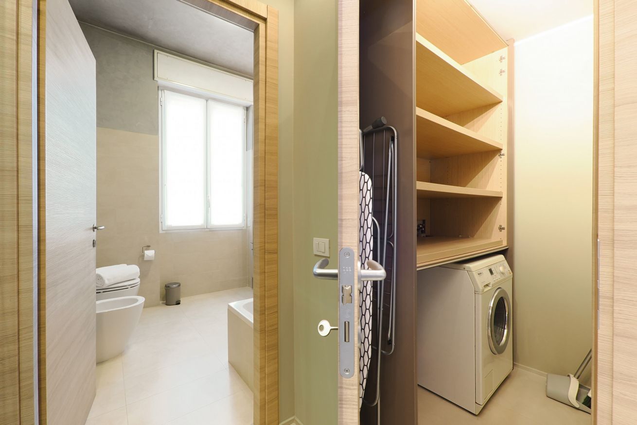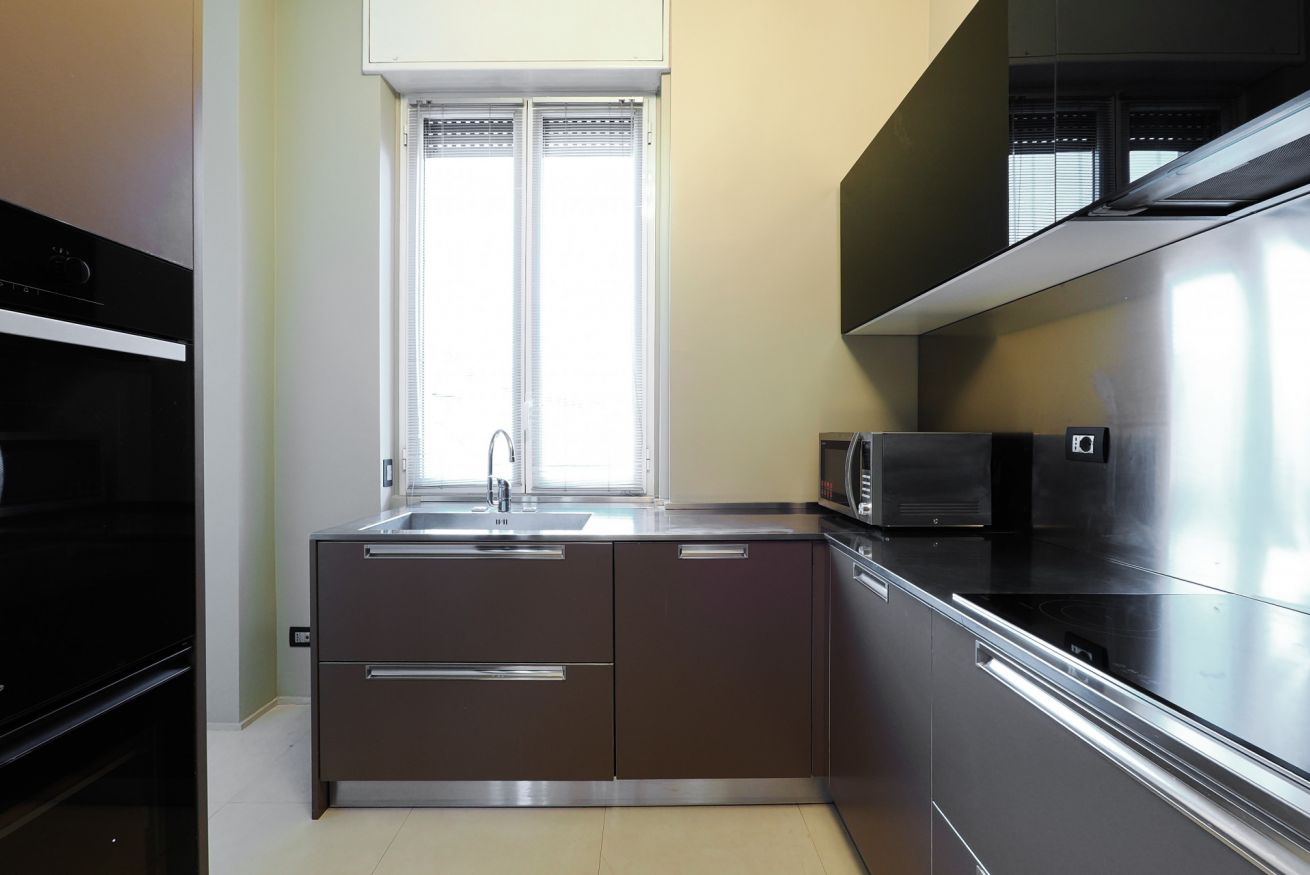Accogliente appartamento composto da due camere da letto, situato in un palazzo signorile nel cuore di Milano. Dall'ingresso, si accede a una cucina abitabile, completamente attrezzata con un frigorifero a due ante con trita ghiaccio, un forno tradizionale e un microonde, un frigorifero per i vini, una lavastoviglie e una macchina del caffè.