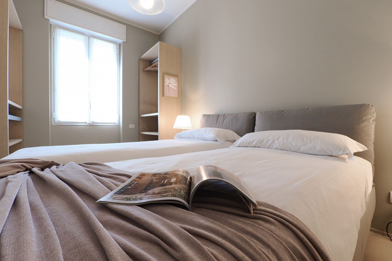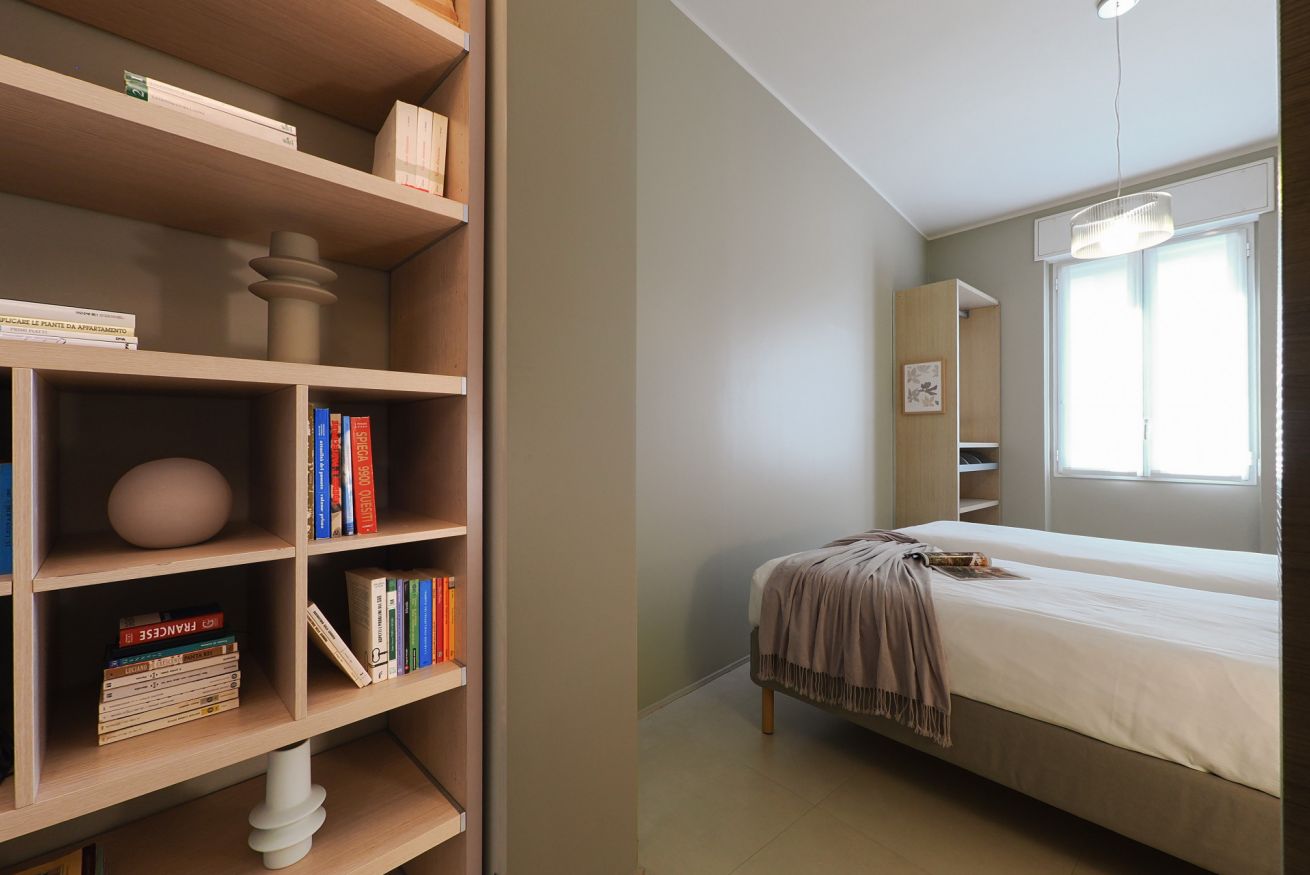 La seconda camera è arredata con due letti singoli, ideale per ospiti o bambini.