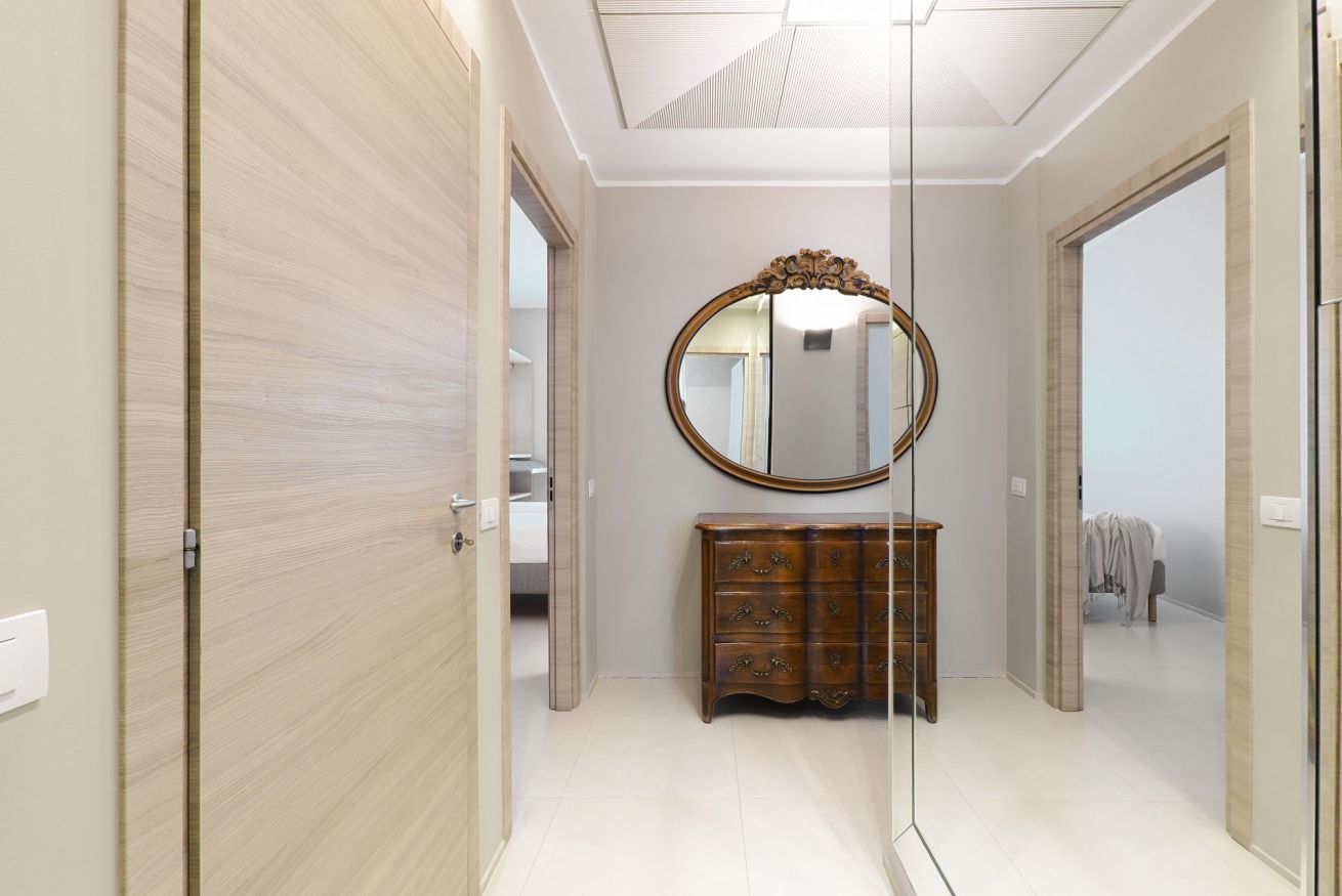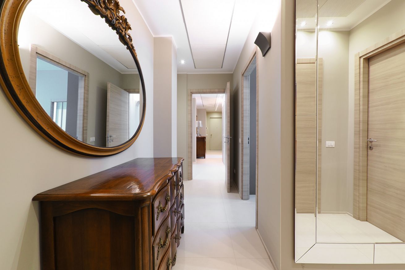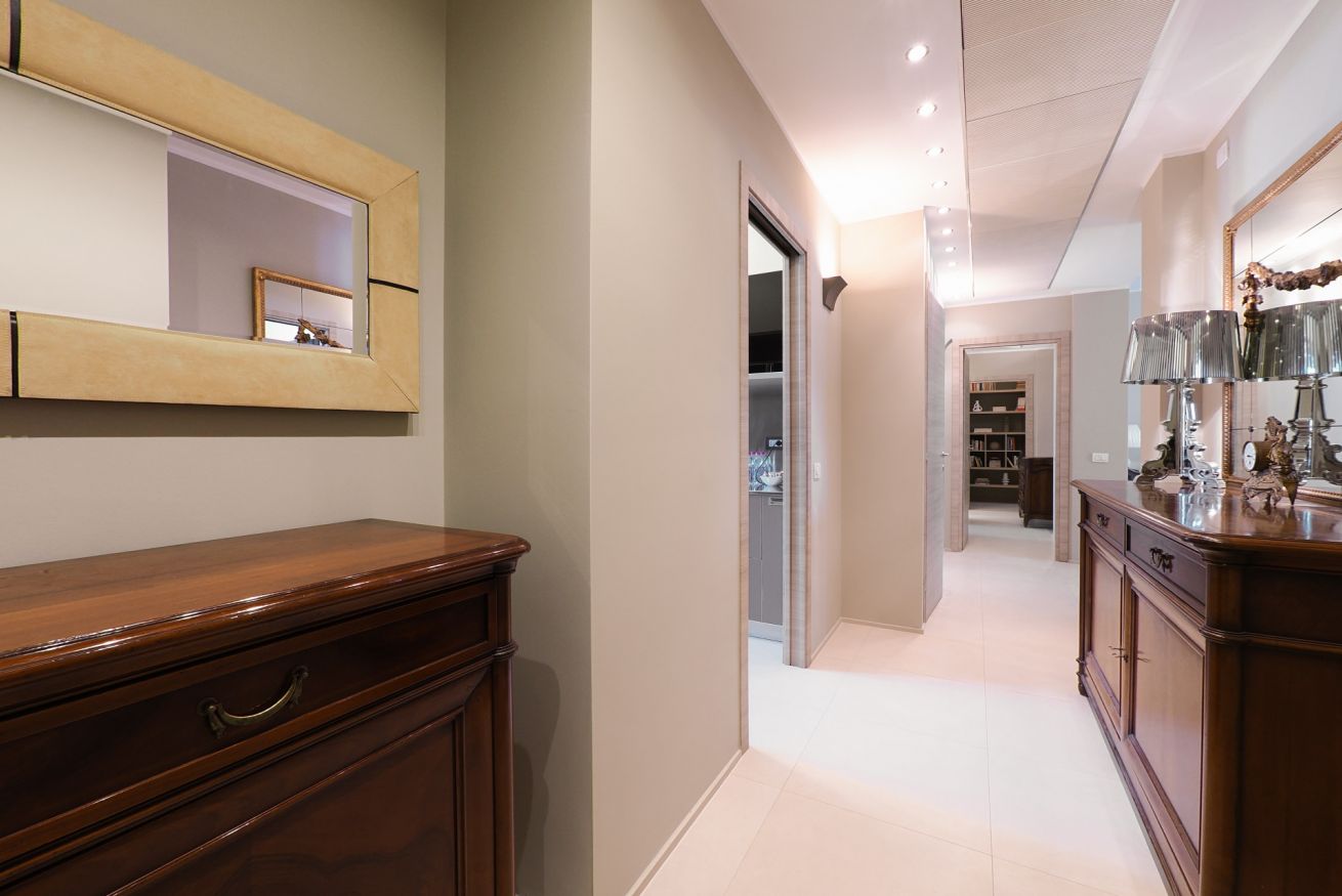 Un corridoio ben progettato collega tutti gli spazi, ottimizzando la disposizione e rendendo l'appartamento funzionale.