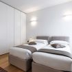 L'appartamento dispone di una camera matrimoniale spaziosa con cabina armadio e bagno privato con doccia. È presente anche una seconda camera con due letti singoli e armadio, con accesso a un ulteriore bagno con doccia. A queste si aggiunge una terza camera con letto singolo, perfetta per un ospite o come studio.