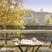 Bilocale arredato e servito; soggiorno con vista parco, balcone, divano letto, poltrona e tavolo da pranzo; televisione schermo piatto e connessione WiFi gratuita in fibra ottica; cucina attrezzata open-space con lavastoviglie, frigorifero, freezer, lavapanni e forno a microonde; camera matrimoniale, armadio spazioso, scrittoio e balcone; bagno ensuite con vasca e doccia, bidet e toilette; arredato con cura, riscaldamento e aria condizionata centralizzato, doppie finestre e pavimenti in marmo.