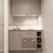 Monolocale arredato e servito con balcone; spazi confortevoli e ottimizzati con letto matrimoniale e ampio spazio armadio; televisione schermo piatto e connessione WiFi gratuita in fibra ottica; area da pranzo con tavolo e cucina attrezzata open space con frigorifero; bagno ensuite con doccia, bidet e lavapanni; riscaldamento e aria condizionata centralizzato, doppie finestre e pavimenti in marmo.