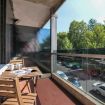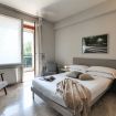 Monolocale arredato e servito con balcone affacciato sul parco; spazi confortevoli e ottimizzati con letto matrimoniale, poltrone e ampio spazio armadio; televisione schermo piatto e connessione WiFi gratuita in fibra ottica; area da pranzo con tavolo e cucina attrezzata open space con frigorifero, freezer, lavastoviglie e forno a microonde; bagno ensuite con finestra, vasca e doccia, bidet e lavapanni; arredato con cura, riscaldamento e aria condizionata centralizzato, doppie finestre e pavimenti in marmo.