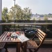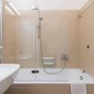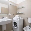 Trilocale arredato e servito; soggiorno affacciato sul parco, area da pranzo e balcone; area salotto con divano a 4 posti, chaise longue e poltrona; televisione schermo piatto e connessione WiFi gratuita in fibra ottica; cucina open-space attrezzata con lavastoviglie, frigorifero, freezer e forno a microonde; camera matrimoniale con ampio spazio armadio, scrivania e balcone con vista parco; seconda camera con due letti singoli, affacciato sul parco con armadio e scrivania; e bagno con vasca e doccia, due lavandini, lavapanni, bidet e toilette; arredato con cura, pavimenti in marmo, doppie finestre e riscaldamento e aria condizionata centralizzati.