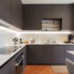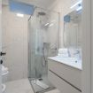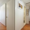 L'appartamento si apre su un ampio ingresso che conduce a un elegante soggiorno con cucina open-space, vero e proprio cuore della casa.