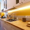 Con il pavimento in legno e i colori delicati che predominano negli interni, questo appartamento emana una calma e una serenità uniche, rendendolo il rifugio ideale per chi desidera esplorare la città senza rinunciare al comfort di casa.